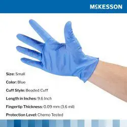 Exam Glove McKesson Confiderm® 3.5C Small NonSterile Nitrile Standard Cuff Length Textured Fingertips Blue Chemo Tested. GLOVE, EXAM NTRL SM N/S CHEMO 3.5C (200/BX 10BX/CS)